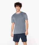 80% organic combed cotton/20% recycled polyester. Towelling fabric. Enzyme washed. Straight fit. 1x1 ribbed collar. Herringbone taped neck. Reinforced shoulders. Half moon back yoke. Twin needle sleeves and hem. Tag free. Recycled polyester is made from post-consumer waste.