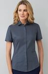 55% Cotton, 45% Polyester Cotton rich, short sleeve ladies blouse, easy care and easy iron practicality.