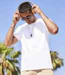 100% cotton.* Ribbed collar. Taped neck. Tubular knit. Twin needle stitching on sleeves and hem. Cut out label.